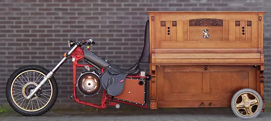Een hybride motorfiets-piano en DJ booth met ingebouwd soundsysteem, waar DJ’s, muzikanten en publiek kunnen aanhaken. Volledig off-grid aangedreven verandert het elke plek in een podium vol spektakel.
